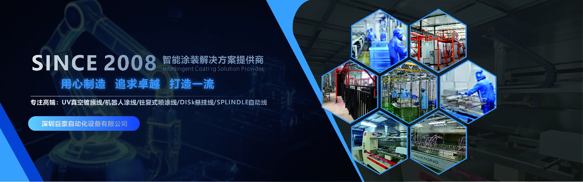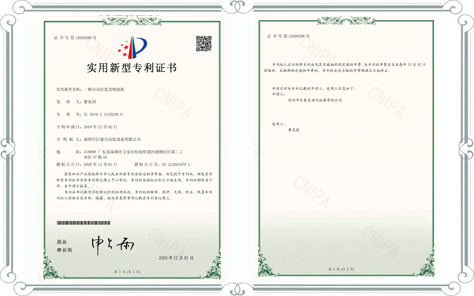 巨豪自動化設備有限公司是一家擁有自動噴涂工業技術、自主知識產權的高科技型技術企業。公司總部位處廣東省深圳市寶安區松崗街道,工廠位于東莞市石排鎮,廠房占地面積8500平方米,擁有專業員工80名,管理人員及技術人員近30名,是一家集工業噴涂機器人研發、生產、銷售,服務為一體的綜合性公司,擁有雄厚的技術力量、完整的質量管理體系、精良的加工設備,專注噴涂技術領域12年。擁有多項國家技術專利,公司已經為國內外客戶提供了數百條各類智能涂裝生產線。
